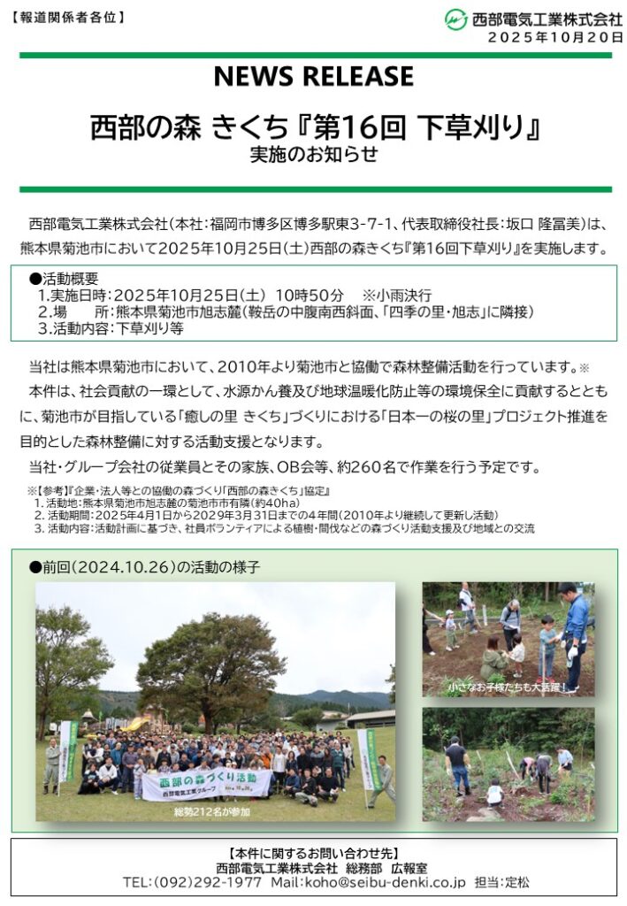 西部の森 きくち『第16回 下草刈り』の実施のお知らせ